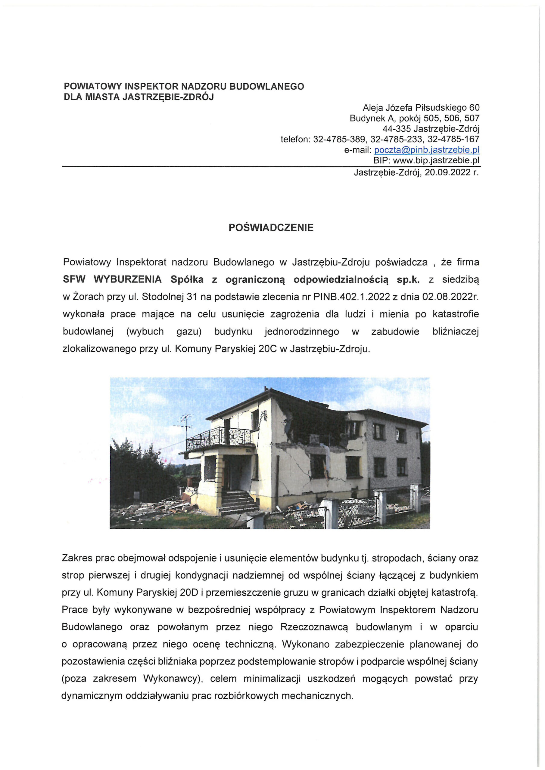 SFW Wyburzenia - jeśli szukasz firmy wyburzeniowej w tej lokalizacji to jesteśmy najlepszym wyborem. Mimo tego, że działamy na terenie całej Polski to wyburzenia na Śląsku i w Żorach są nam bardzo bliskie - to nasze rodzinne strony.